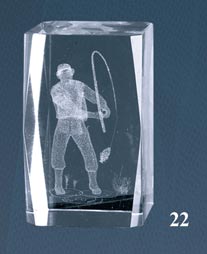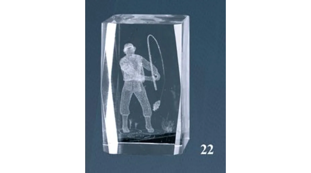 Kristall-Trophäe in 3D gemacht represantando einen Fischer. In verschiedenen Größen erhältlich.
