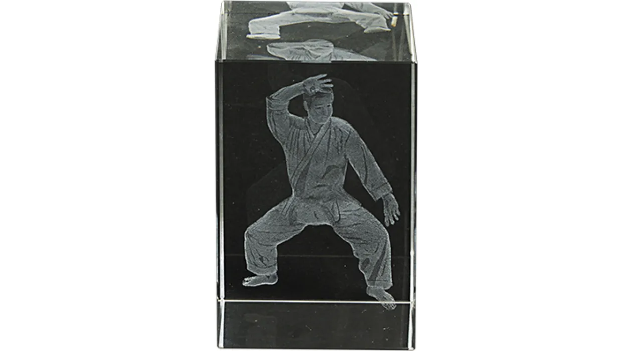 Kristall-Trophäe in 3D gemacht represantando Karate . Erhältlich in verschiedenen Größen .