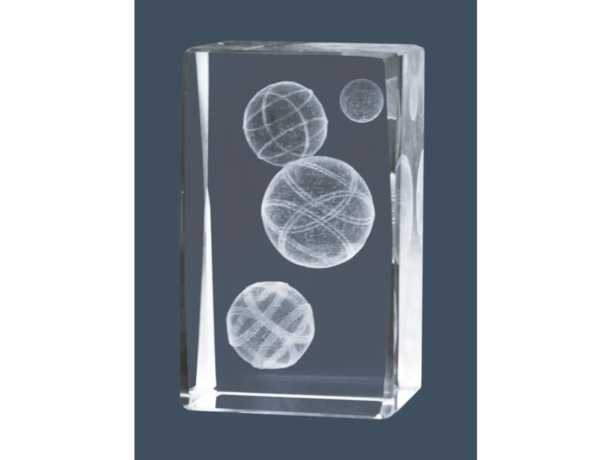 Kristall-Trophäe in 3D gemacht represantando eine Boccia Kugeln . Erhältlich in verschiedenen Größen .