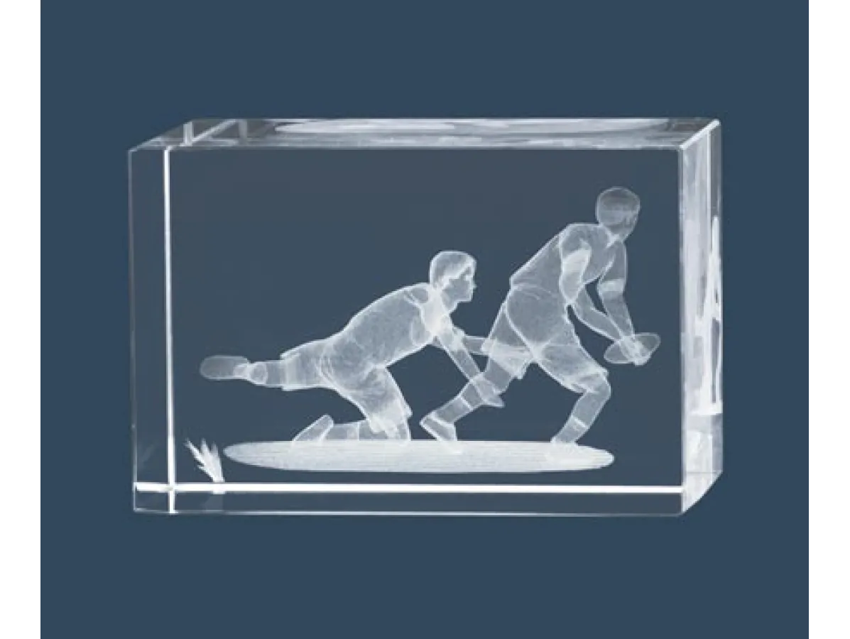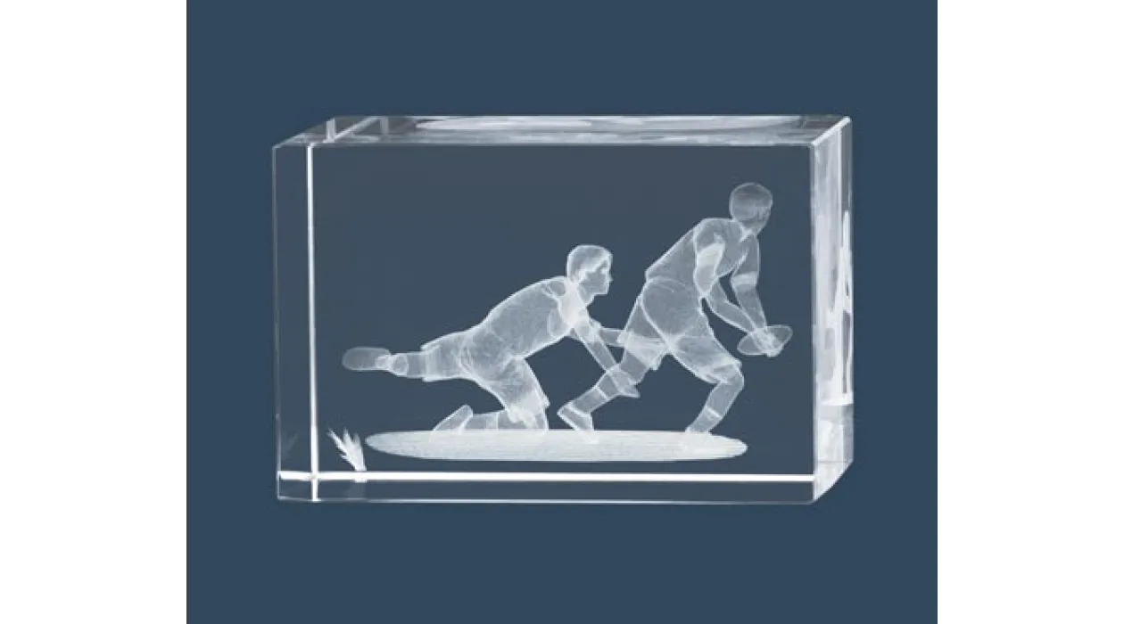 Kristall-Trophäe in 3D gemacht represantando einige Rugby-Spieler. In verschiedenen Größen erhältlich.
