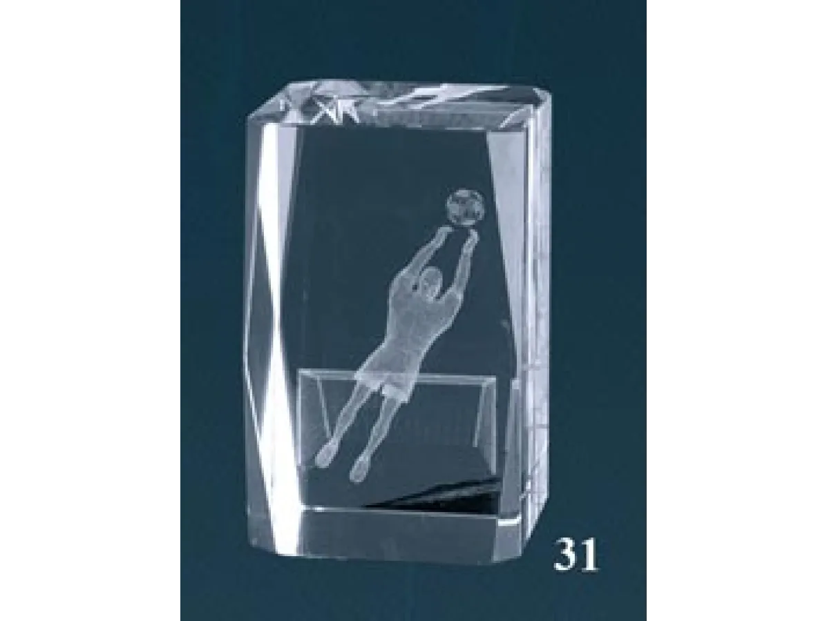 Kristall-Trophäe in 3D gemacht represantando einen Fußball-Torwart. In verschiedenen Größen erhältlich.