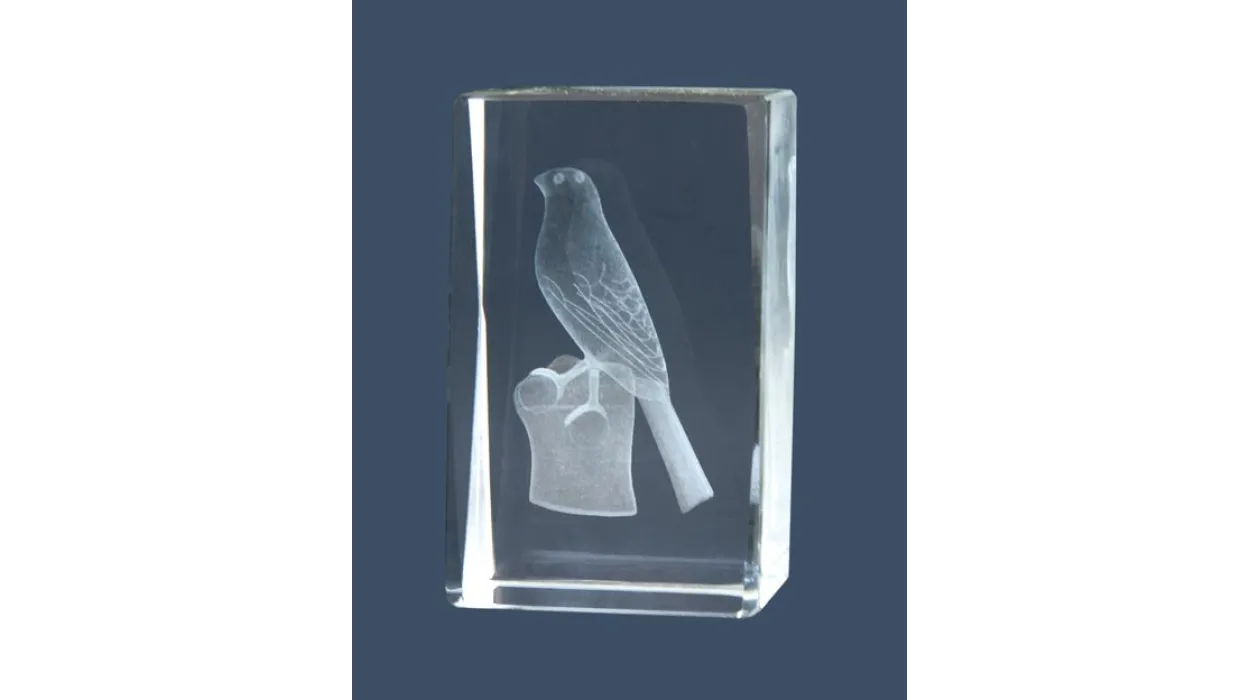 Kristall-Trophäe in 3D gemacht represantando einen Vogel. In verschiedenen Größen erhältlich.