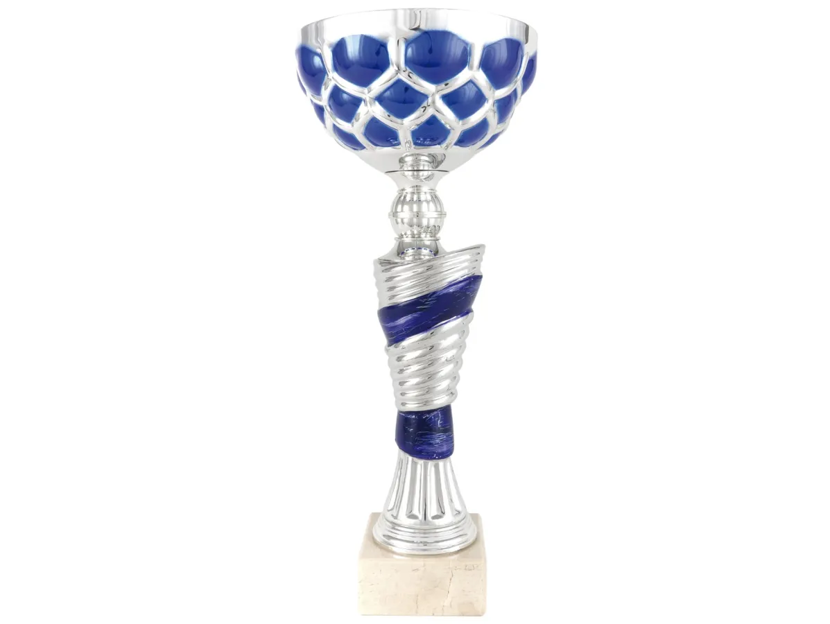 Silver Cup Typ Ball in Silber geschnitzt. Lehnte sich gegen einen Fuß hoch mit abstrakte Form, die Wahl der Scheibe von 25 mm Durchmesser zwischen den verschiedenen Sportarten und Aktivitäten. Das Ganze ruht auf einem quadratischen Sockel aus Marmor. Verschiedene Maßnahmen.