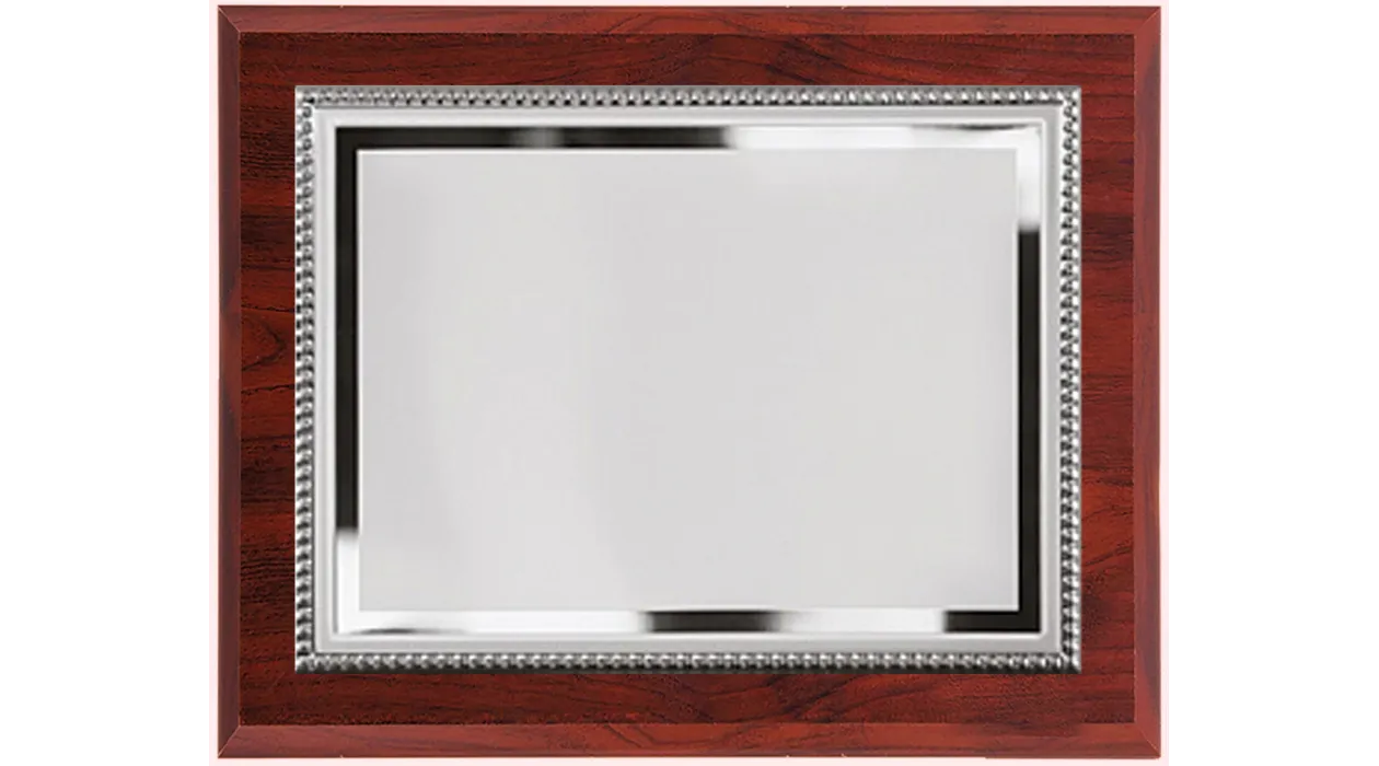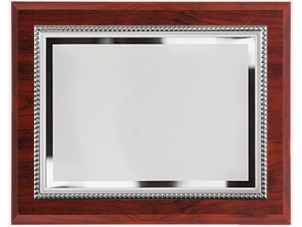 Große Gedenktafel mit den Maßen 25 cm Breite und 20 cm Höhe. Sie wird mit einer silbernen Sublimationsmetallplatte geliefert, auf der Bilder und beliebiger Text in Farbe eingraviert werden können. Sie kann vertikal oder horizontal auf einem Tisch platziert werden.