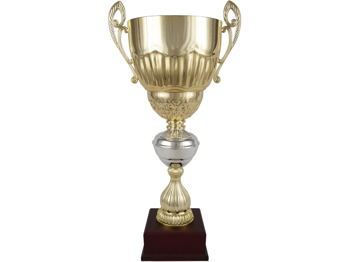 Copa Low Cut. Typ Salatschüssel mit Griffen ausgestattet. Die Glasschale wird mit einem ausgebildeten und horizontalen Linie eingerichtet. Der Fuß der Basis wird durch die zweifarbige (Gold und Silber) aus. Das Ganze ruht auf einem quadratischen Sockel zu madera.Diferentes Maßnahmen.