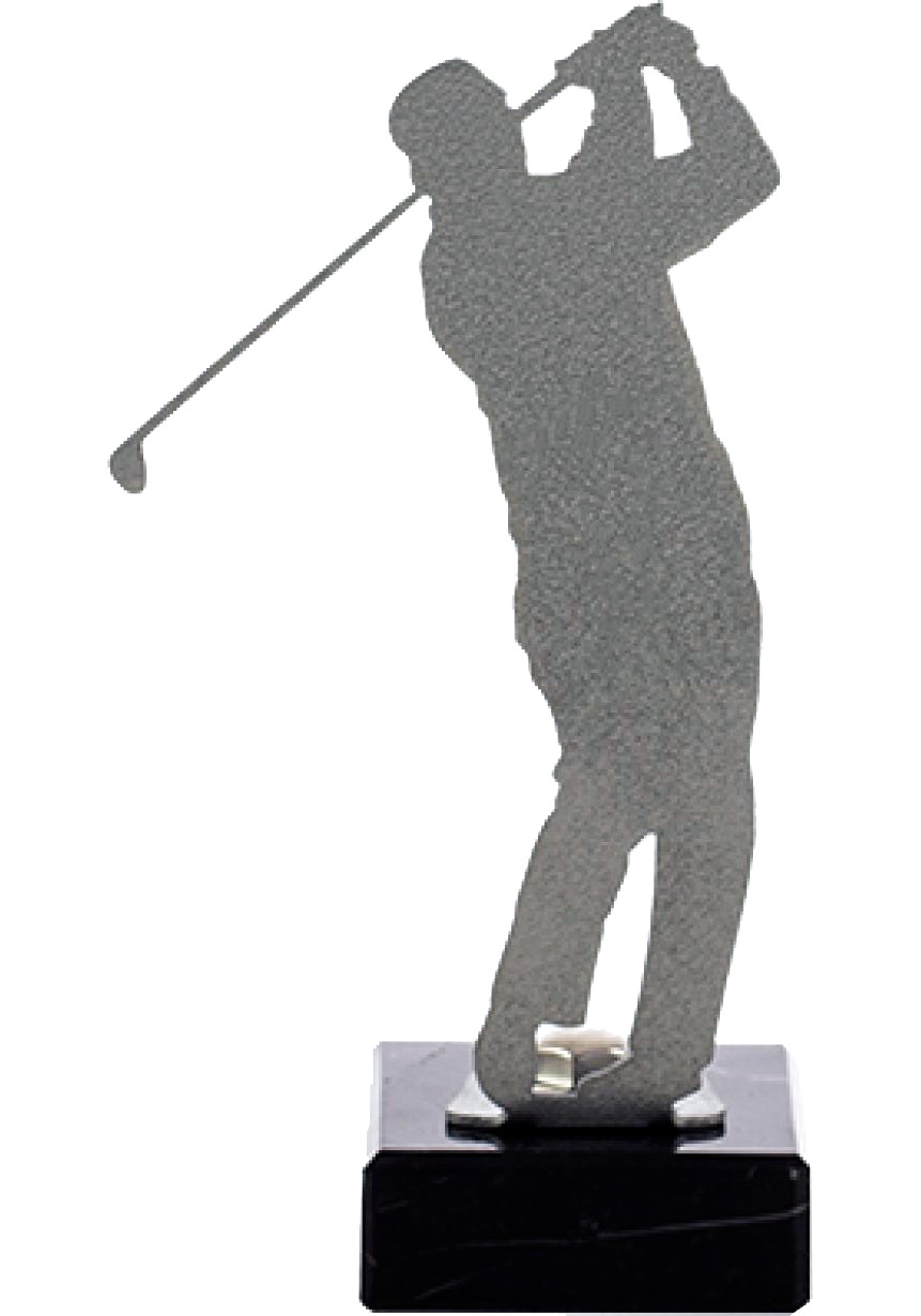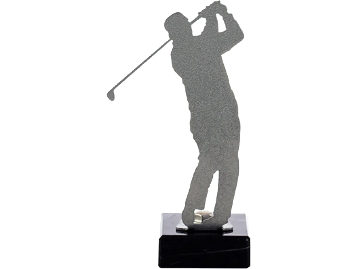 Trophy aus Metall mit der Figur eines Golfers. Marmorsockel. Erhältlich mehrere Maßnahmen.
