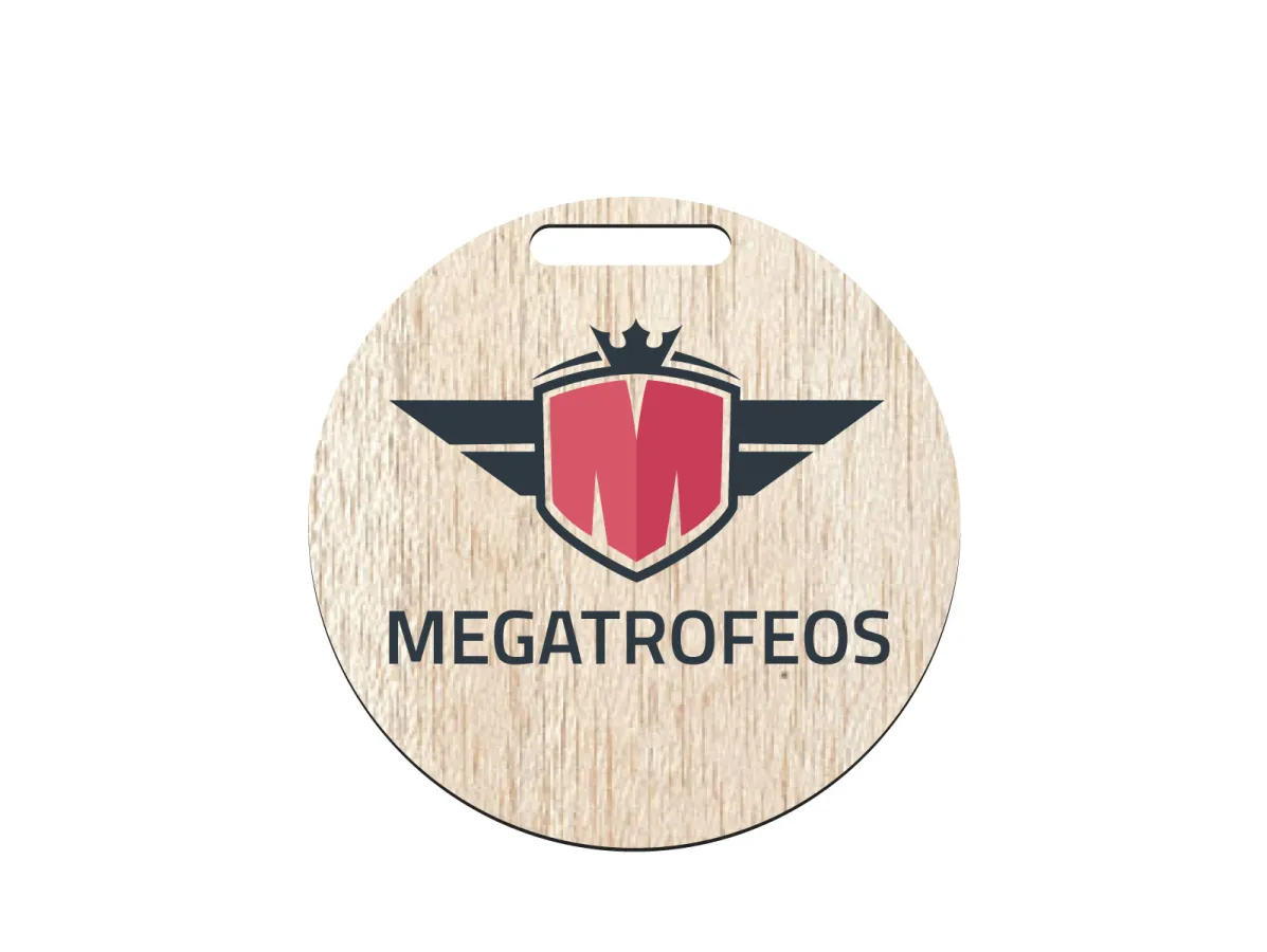 Natürliche und nachhaltige Holzmedaille mit einer Breite von 6, 7 und 8 cm, mit einer Öffnung zum Aufhängen eines Bandes oder Schlüsselbandes. Das Holz ist 4 mm dick und ermöglicht es Ihnen, Ihr Design in voller Farbe über die gesamte Fläche der Medaille zu gravieren.