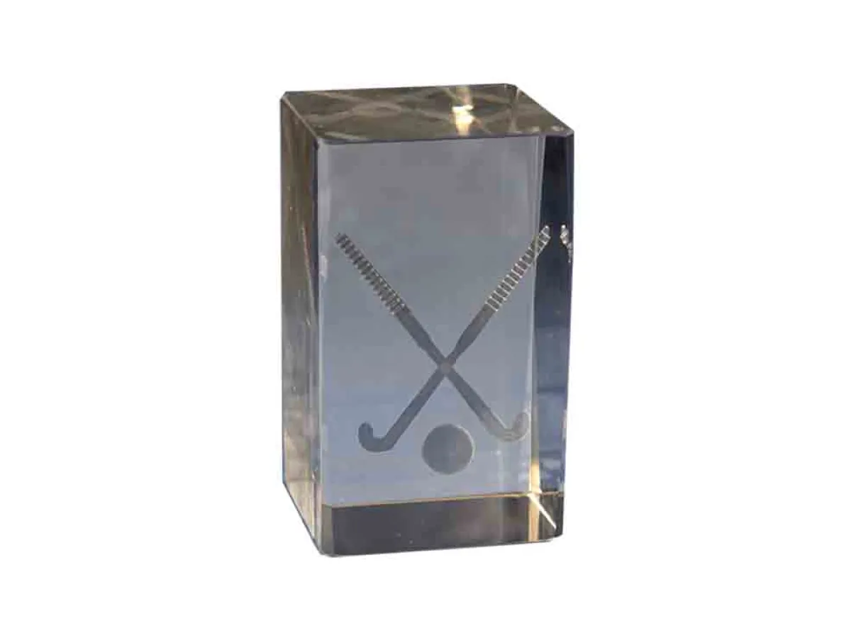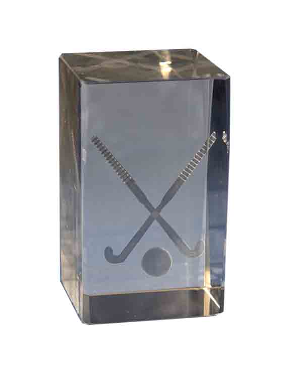 Kristall-Trophäe in 3D gemacht represantando zwei Stöcke Hockey. In verschiedenen Größen erhältlich.