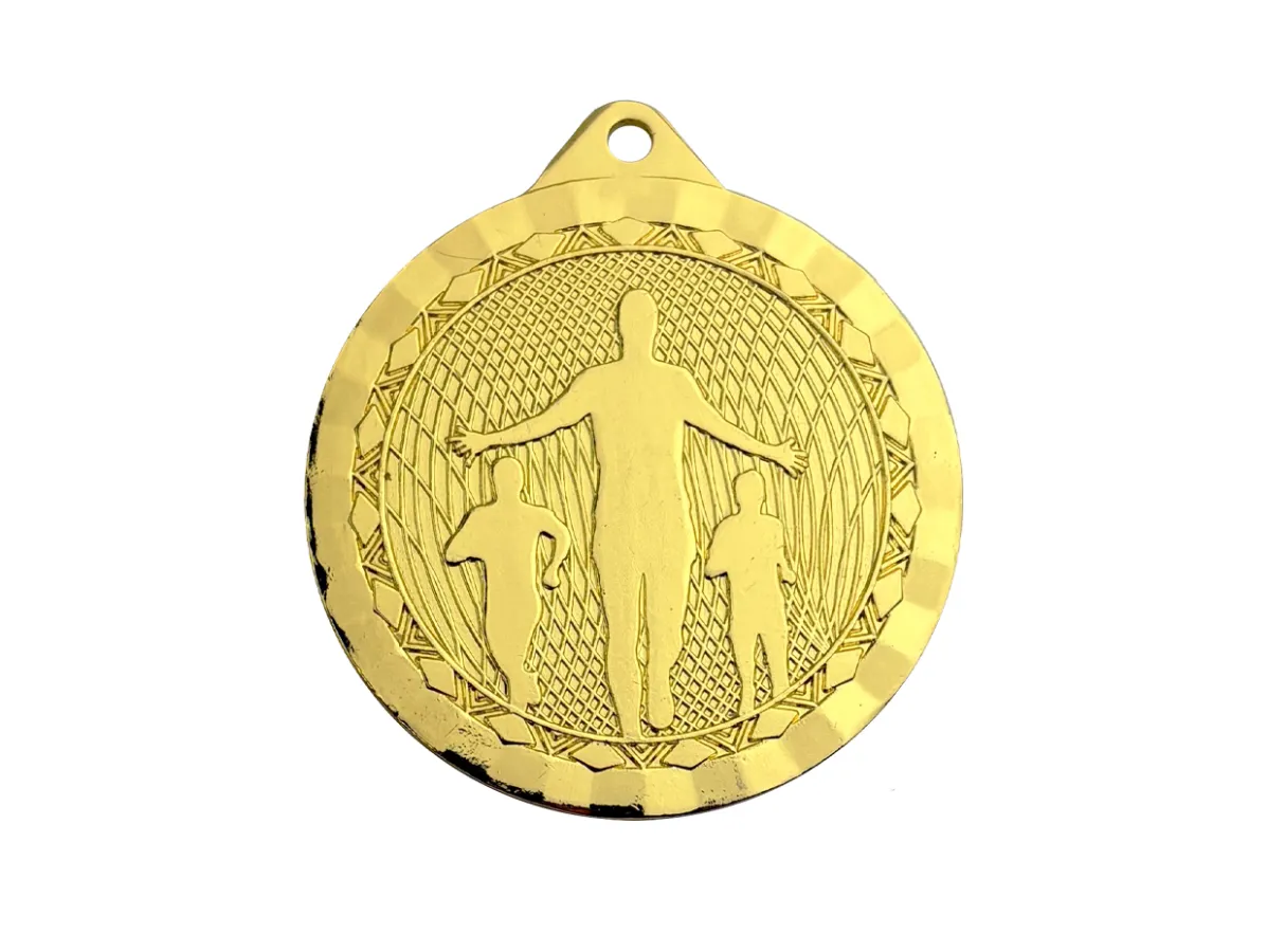 Padel-Medaille mit 50 mm Durchmesser, erhältlich in den Ausführungen Gold, Silber und Bronze.