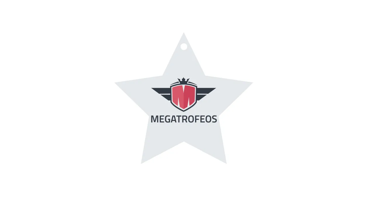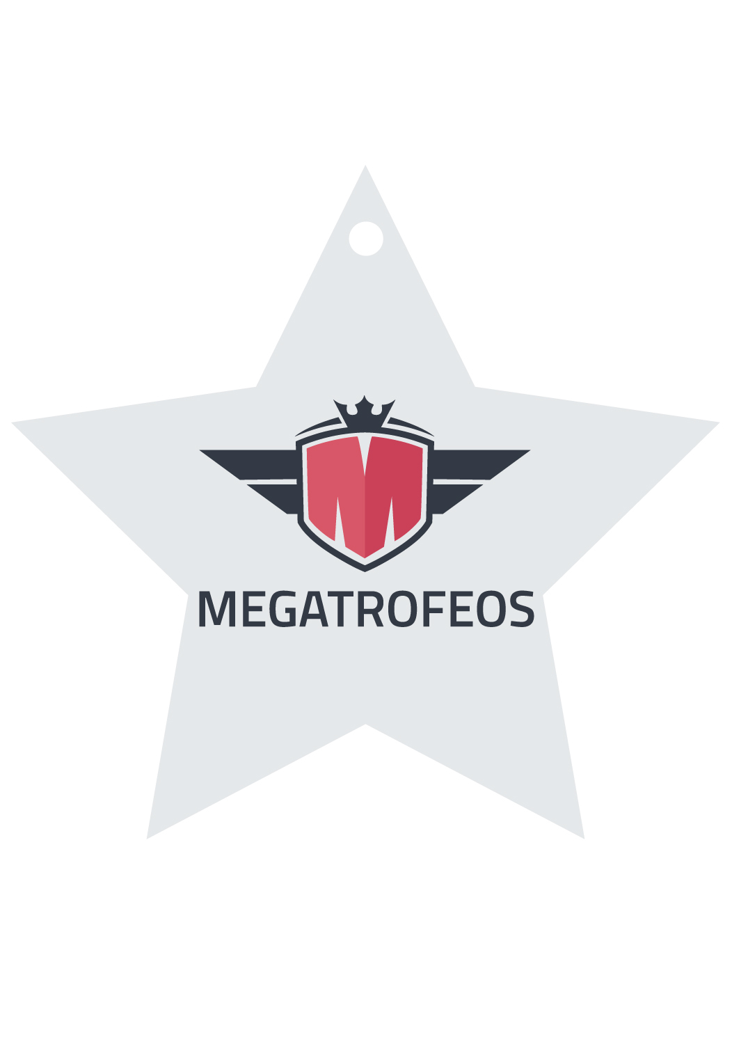 Sternförmige Methacrylat-Medaille, in transparenter Farbe, 60 mm Durchmesser und 3 mm dick, zur perfekten Farbgravur von Texten, Logos etc.