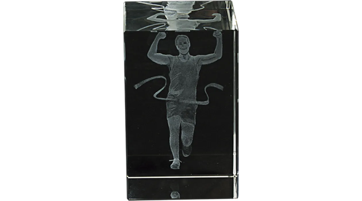 Kristall-Trophäe in 3D gemacht represantando einen männlichen Läufer.In verschiedenen Größen .
