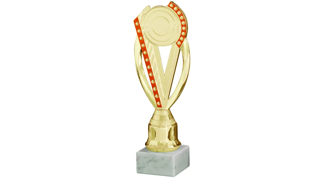 Diese Trophäe für die Wettbewerbsteilnahme hat ein rot-goldenes Design, das sie zu etwas Besonderem macht. Diese Trophäe eignet sich perfekt zur Belohnung von Teilnehmern jeder Art von Wettbewerb und ist eine hervorragende Möglichkeit, den Einsatz und das Engagement der Teilnehmer anzuerkennen. Mit seinem auffälligen und eleganten Design wird diese Trophäe bei jeder Sportveranstaltung oder jedem Wettbewerb zum Mittelpunkt der Aufmerksamkeit werden. Feiern Sie die Leistung der Teilnehmer mit dieser einzigartigen Trophäe!