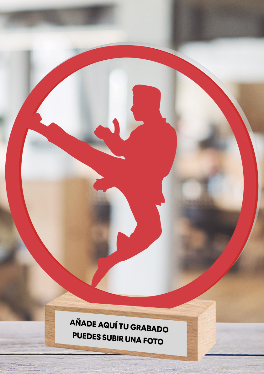 Karate-Trophäe aus Methacrylat und Holz