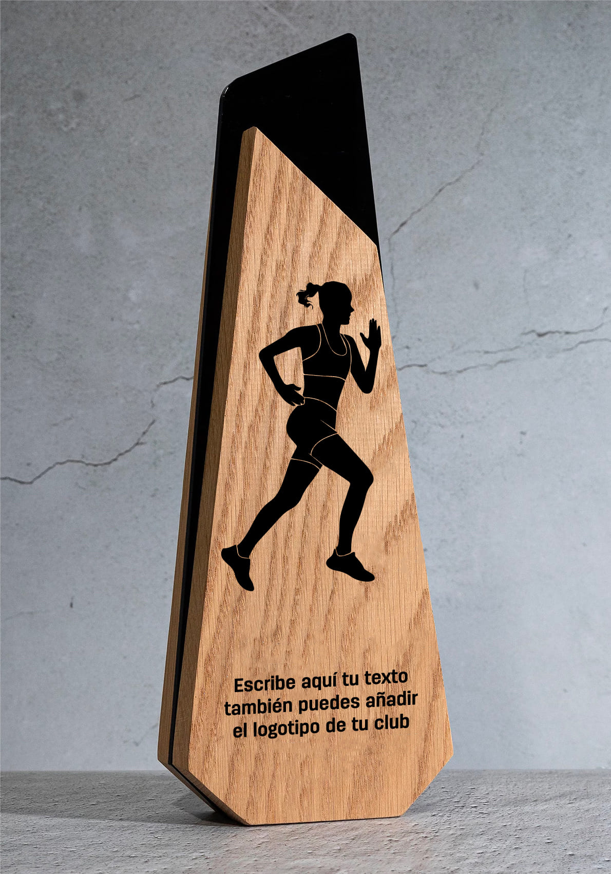 Diese aus Holz und Acryl gefertigte Trophäe für Frauen-Leichtathletik vereint modernes Design, hochwertige Materialien und exklusive Individualisierungsmöglichkeiten und würdigt berufliche Leistungen, Führungsqualitäten und Exzellenz. Ihre stilisierte geometrische Struktur verbindet die natürliche Wärme des Holzes mit der Eleganz des glänzenden schwarzen Acryls und schafft so ein stilvolles, langlebiges und optisch beeindruckendes Objekt.