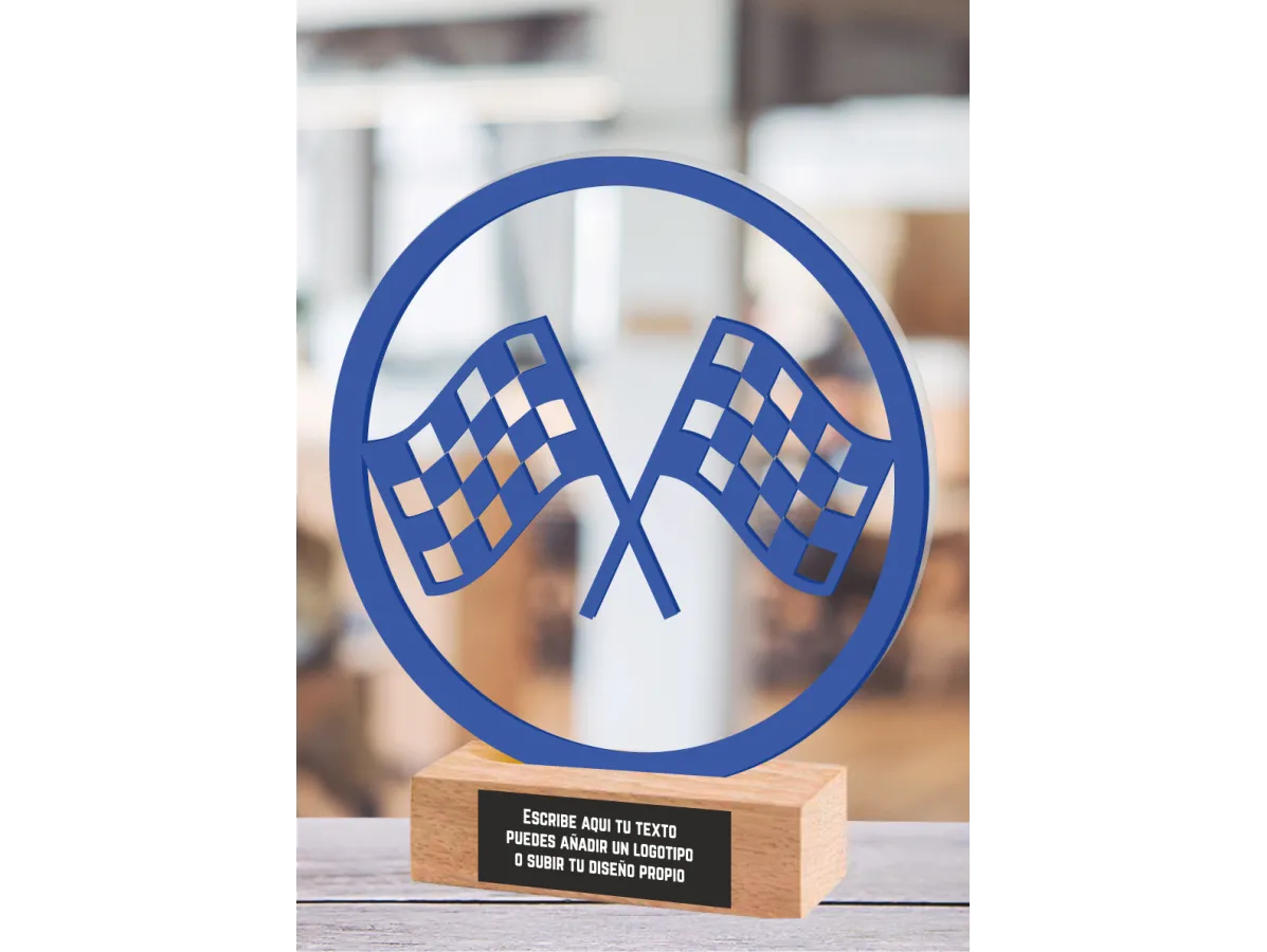 Renntrophäe aus Methacrylat und Holz