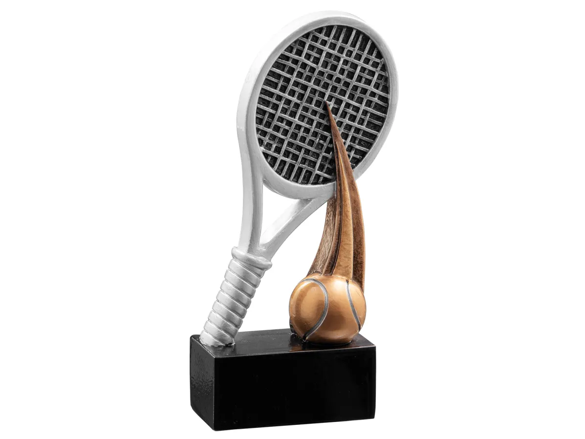 Feiern Sie jeden Punkt, Satz und Sieg mit dieser eleganten Tennistrophäe aus Kunstharz, die die Leidenschaft, Technik und den Einsatz der Spieler würdigt. Hergestellt aus hochwertigem Kunstharz mit silbernen und goldenen Metallic-Oberflächen, besticht sie durch ihr sportliches Design, das den Wettbewerbsgeist des Tennis verkörpert.