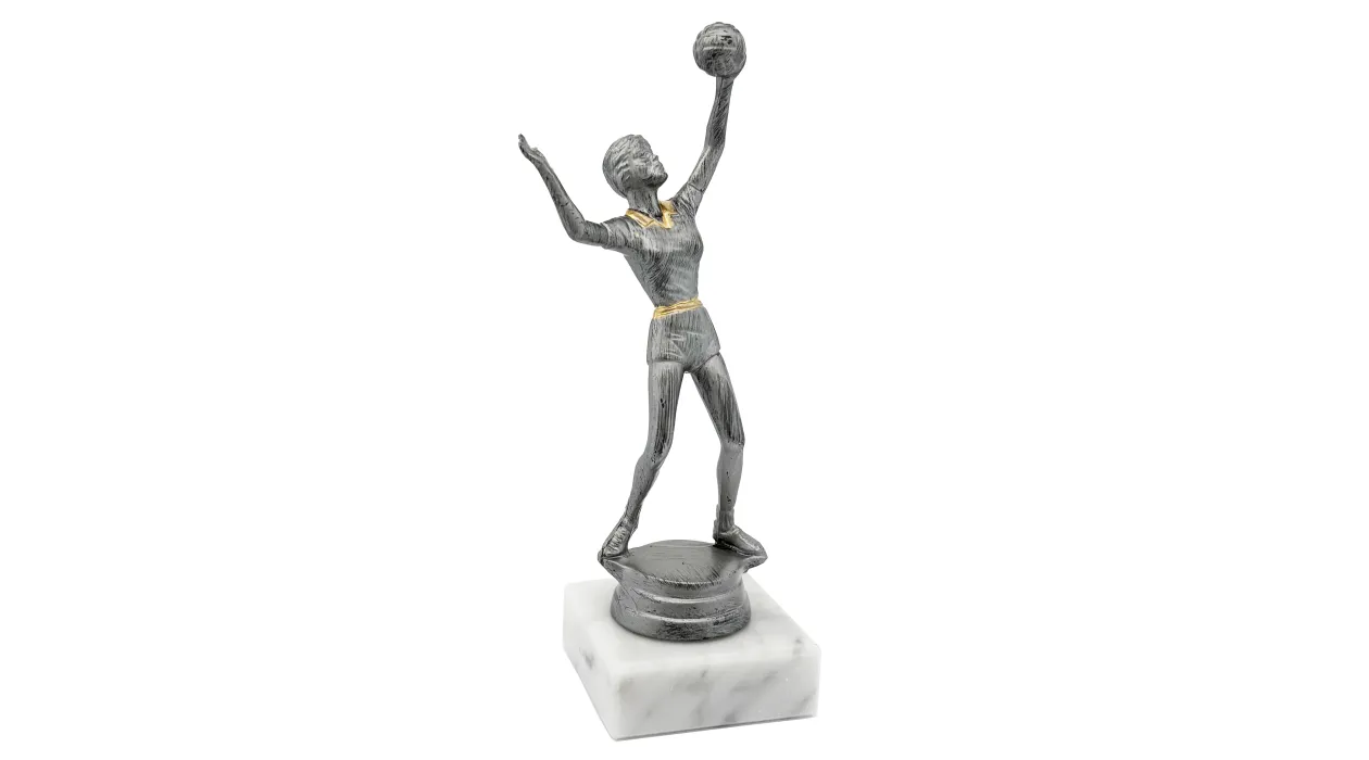 Frauen-Volleyball-Trophäe mit der Silhouette einer Spielerin. An der Basis wird eine Platte mit dem von Ihnen gewünschten personalisierten Text angebracht.