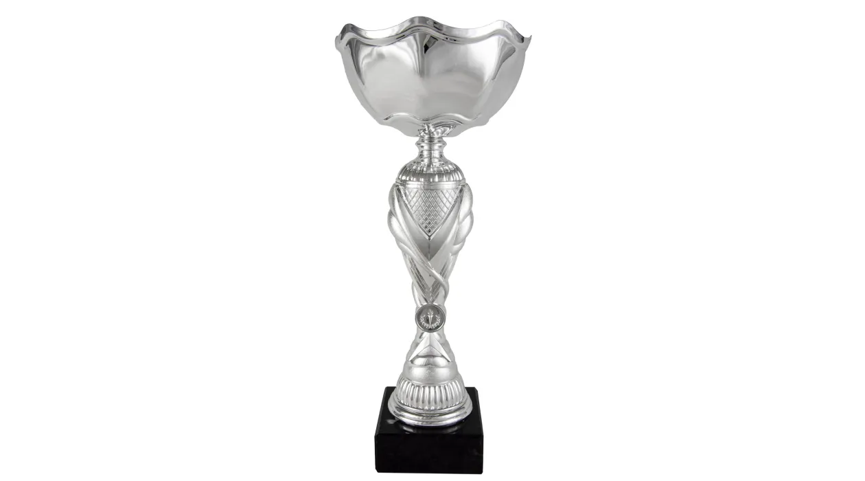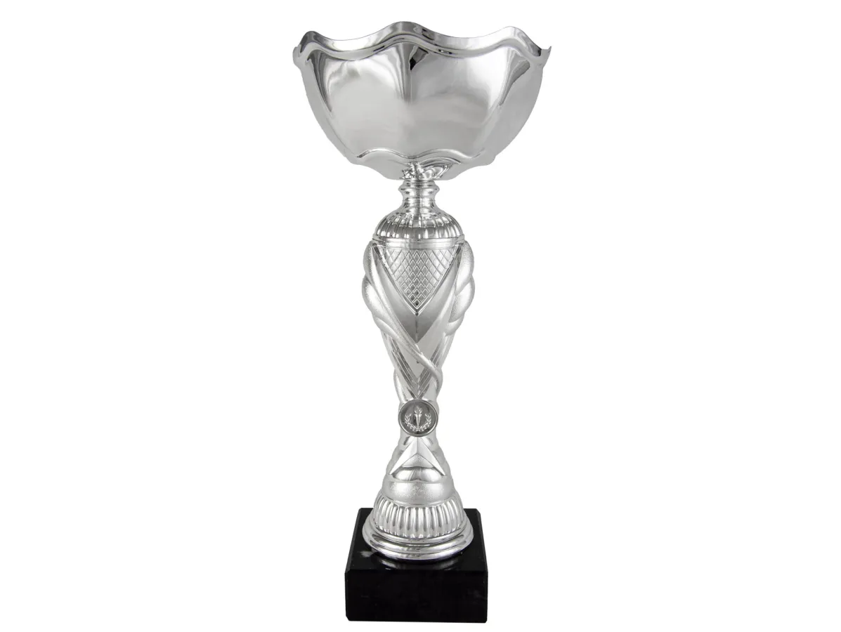 Cup Mini-Typ-Silberkugel mit kleinen goldenen Trapeze im Glas. Er ruht auf geschnitzten goldenen Kugel. Der Fuß wird geschnitzt Trophäe. Seine Basis ist Silber. Die Trophäe ruht auf quadratischen Sockel aus Marmor. Erhältlich mehrere Maßnahmen.