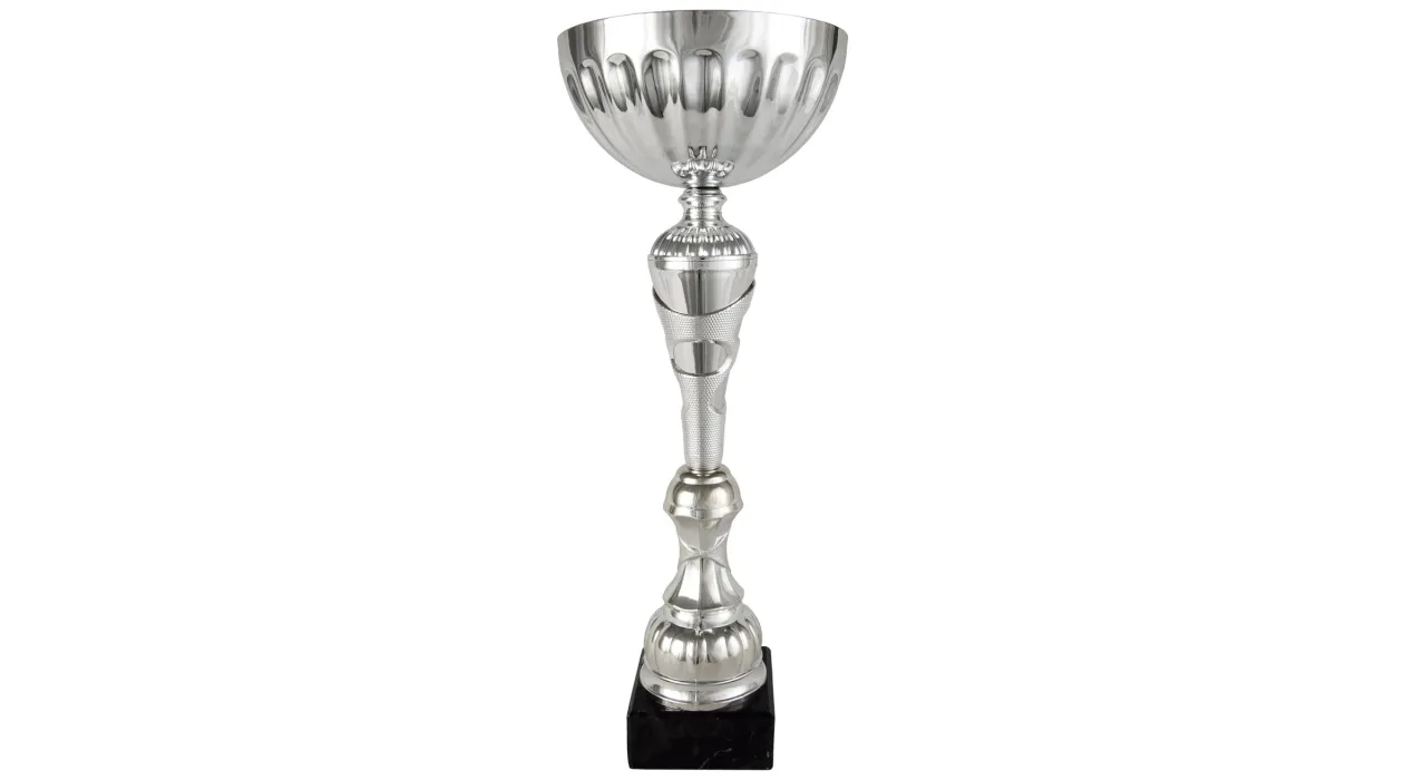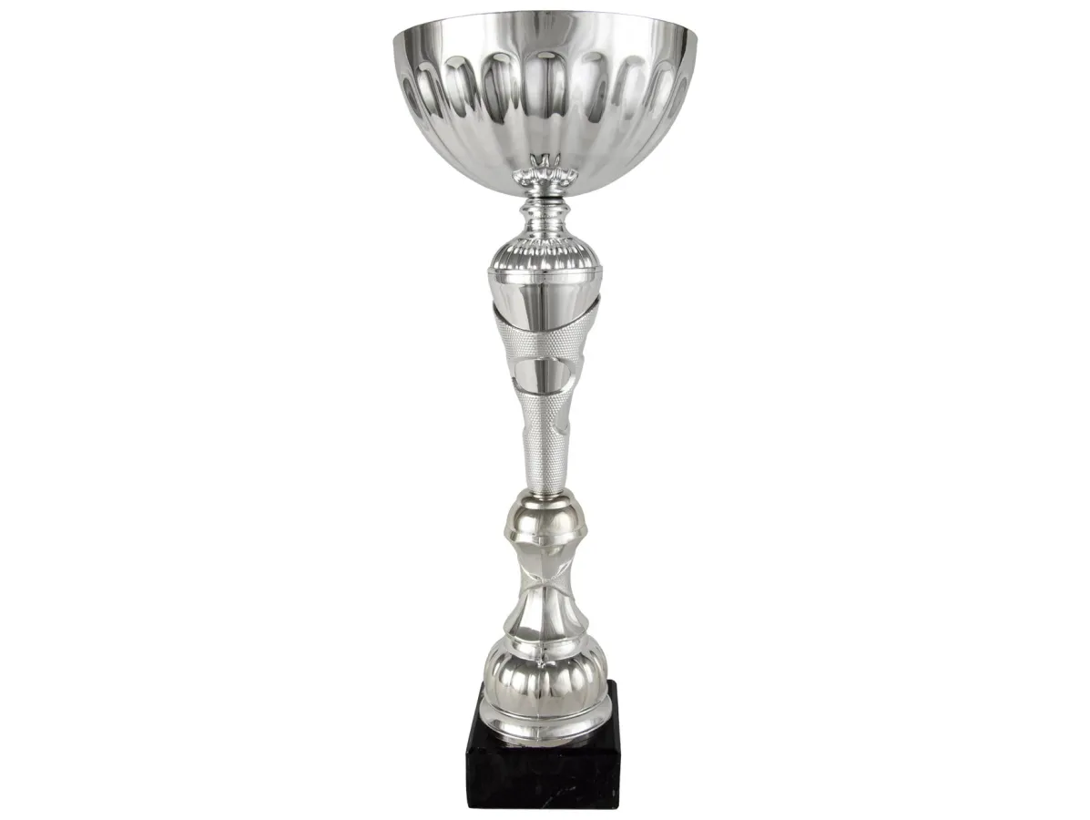 Cup Kugel-Silber mit kleinen blauen Quadrate geschnitzt und unterstützt mit Caddy bis (insbesondere Silber) .Pie gewirkt. Die Trophäe ruht auf Platz dunklen Marmorsockel. Verschiedene Maßnahmen.