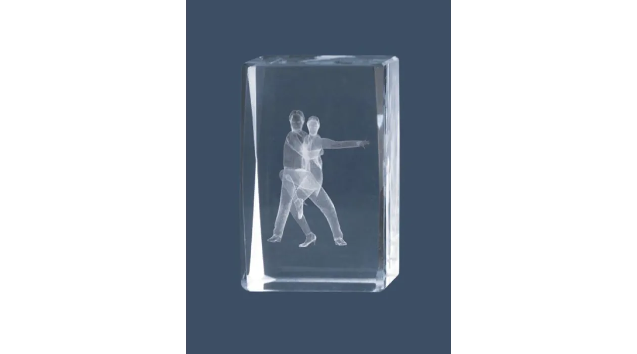 Kristall-Trophäe in 3D gemacht represantando zu einem Paar tanzt Tango. In verschiedenen Größen erhältlich.