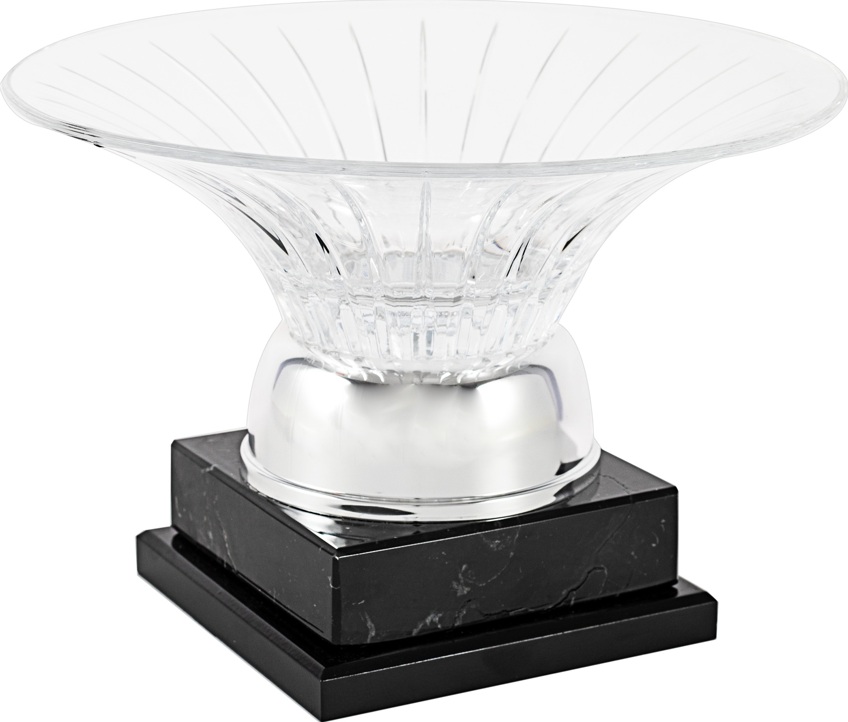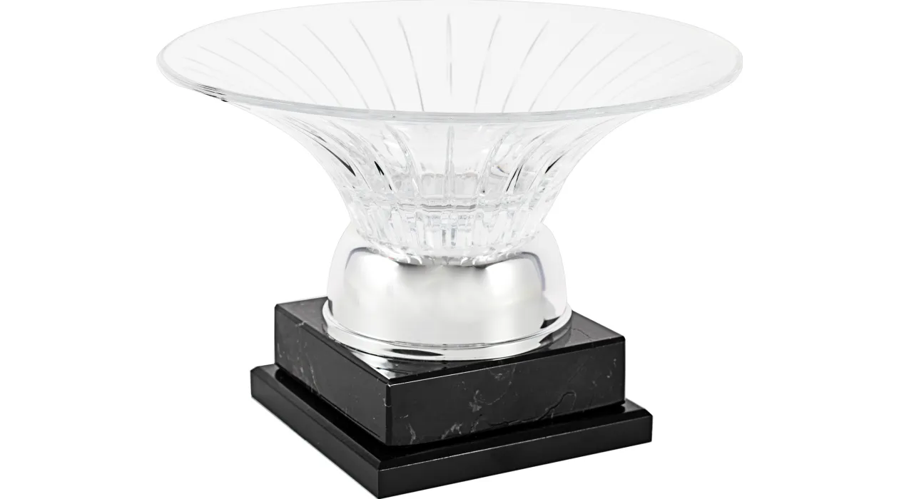Kristall-Vase mit Wellen mit einer goldenen horizontalen Linien in den Fuß geschnitzt. Basis viereckigem Marmor. Erhältlich mehrere Maßnahmen.