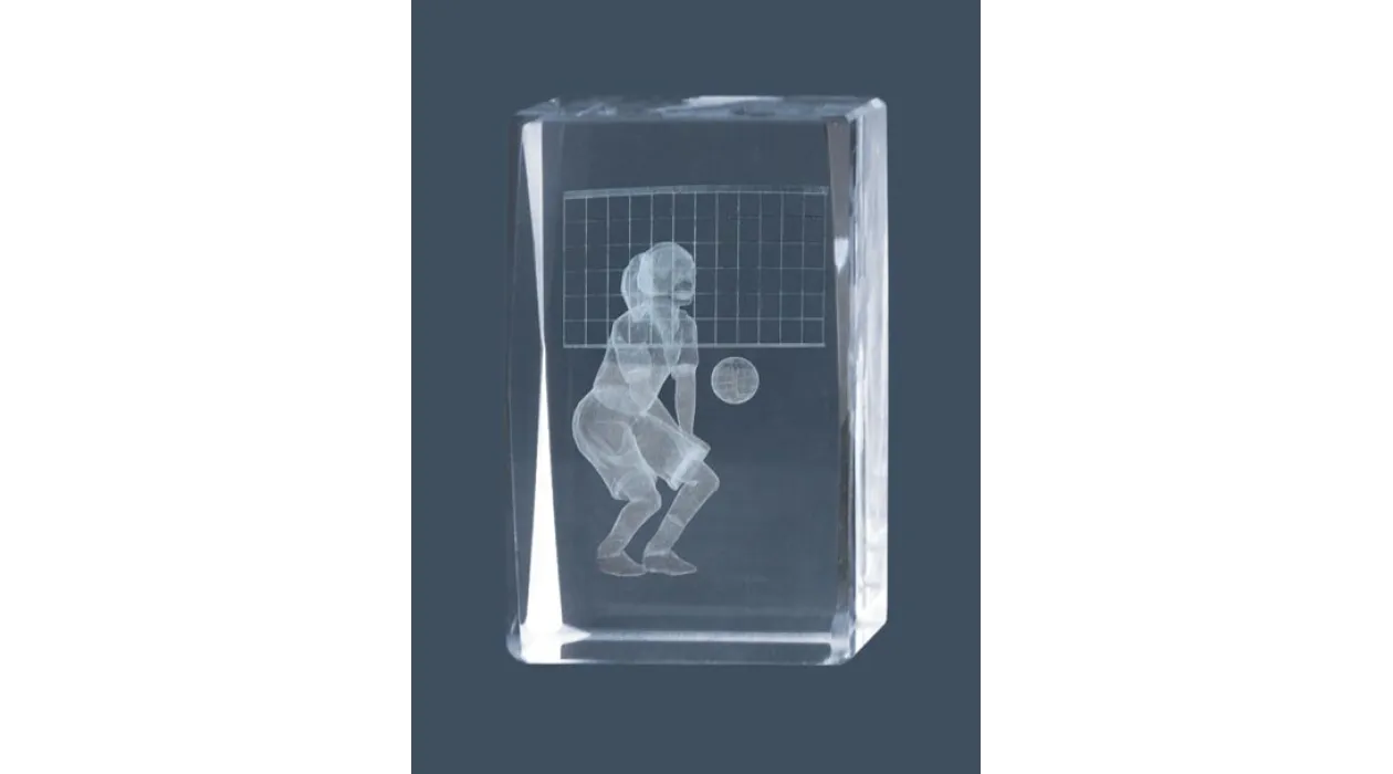 Kristall-Trophäe in 3D gemacht represantando einen weiblichen Volleyball-Spieler. In verschiedenen Größen erhältlich.